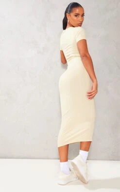 Zero Robe Longue Crème à Manches Courtes Et Découpe Asymétrique