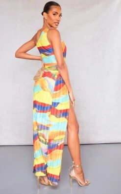 Robe droite moulante bustier imprimé cachemire orange à nouer derrière