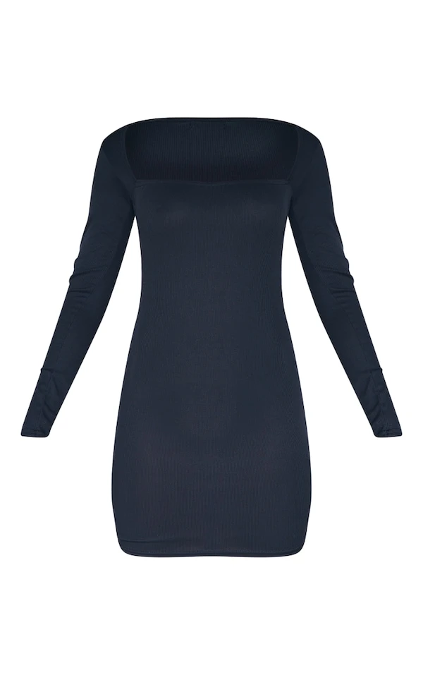 Robe moulante côtelée noire à col très carré