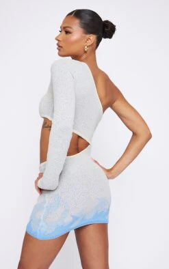 Mini robe bustier en maille tricot torsadée bleue à découpes
