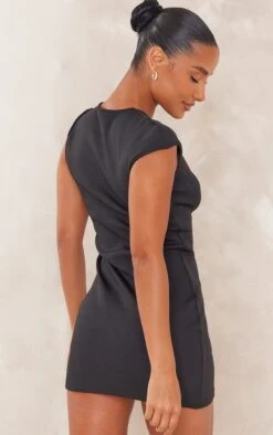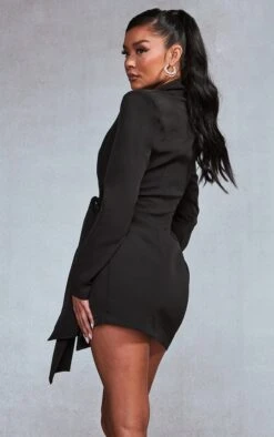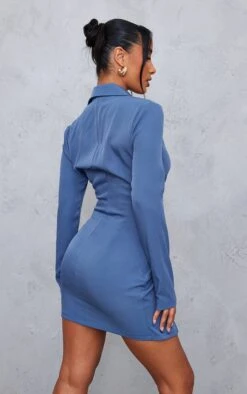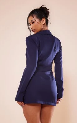 Robe Blazer Bleu Marine Froncée Et Découpée Dans Le Dos à Rayures Et Double Boutonnière