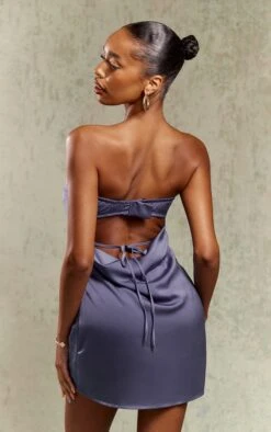 Robe Moulante Bustier Satinée Vert Sauge Drapée à Détail Jupe