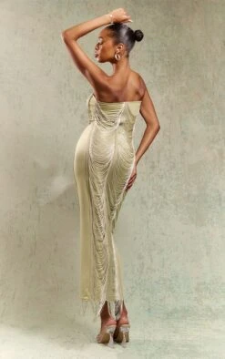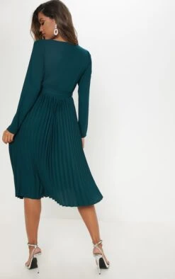 Robe Moulante Vert émeraude Florale Volantée Avec Croisillons Au Dos