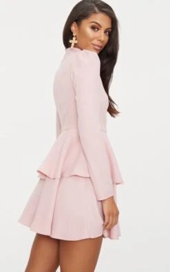 Robe Patineuse Rose Pâle à Col Montant Et Superposition De Volants