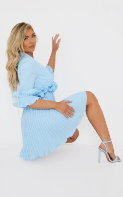 Robe Moulante Volantée Lilas En Mousseline De Soie à Bonnets Plissés