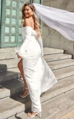 Robe Longue Bustier Blanche à Détail Corset Et Derrière Fendu