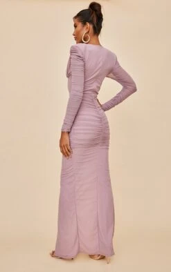 Robe Longue Drapée Lilas En Sequins à Décolleté Et Dos Nu