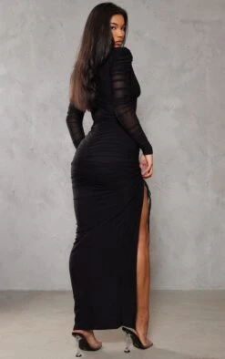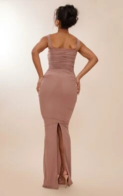 Robe Longue En Mesh Rose Foncé à Bretelles Et Taille Froncée