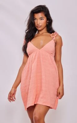 Robe Fendue Longue Plissée Rose Vif à épaule Unique Et Noeud