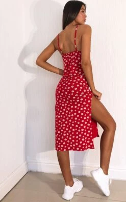Robe Bretelles Fines Fendue En Jersey Rouge à Imprimé Floral