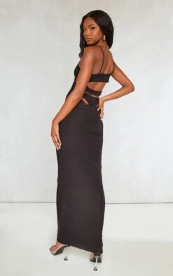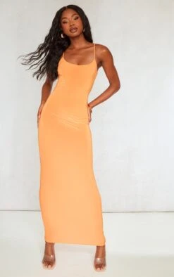 Robe Longue Moulante Orange Découpée Dans Le Dos à Col Rond Et Bretelles