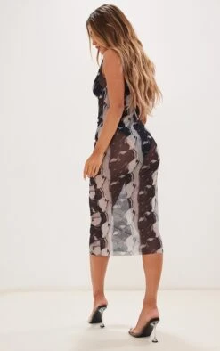 Robe Mi-longue En Mesh Noir & Blanc à Imprimé Marbre Sans Manches