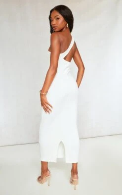 Robe Longue Côtelée Texturée Crème à Bretelles Asymétriques