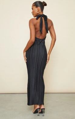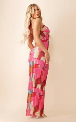 Robe Longue Plissée Découpée Rose Imprimé Abstrait à Dos Nu