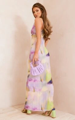 Robe Longue Plissée Multicolore à Imprimé Aquarelle Et Bretelles