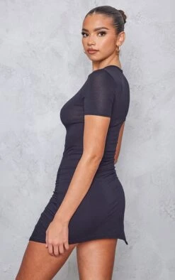 Robe Moulante En Jersey Noir à Manches Courtes Et Côté Froncé