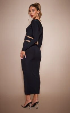 Robe Mi-longue En Jersey Noir Ă Bretelles Et Manches Longues