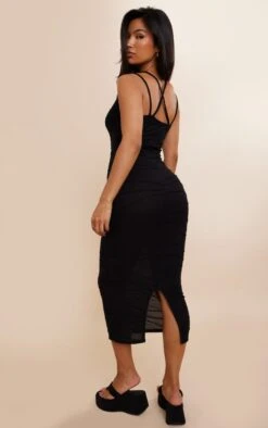 Robe Moulante En Jersey Texturé Noir Découpée Dans Le Dos