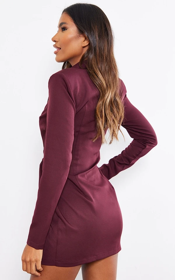 Juste immanquable cette robe au style blazer ! Son coloris prune est hyper stylé et on adore son design cache-coeur et son effet hyper classe. On la porte avec une paire de mules lacées et quelques bijoux fins.