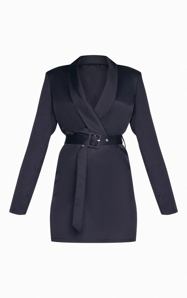 Robe blazer noire à ceinture et décolleté
