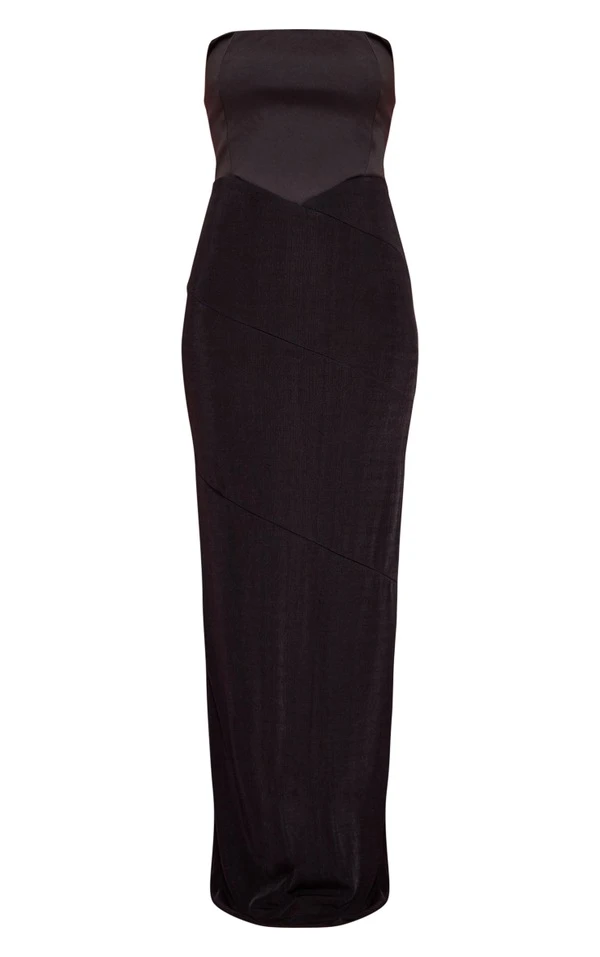 Robe bustier moulante longue en acétate noir à parties contrastantes