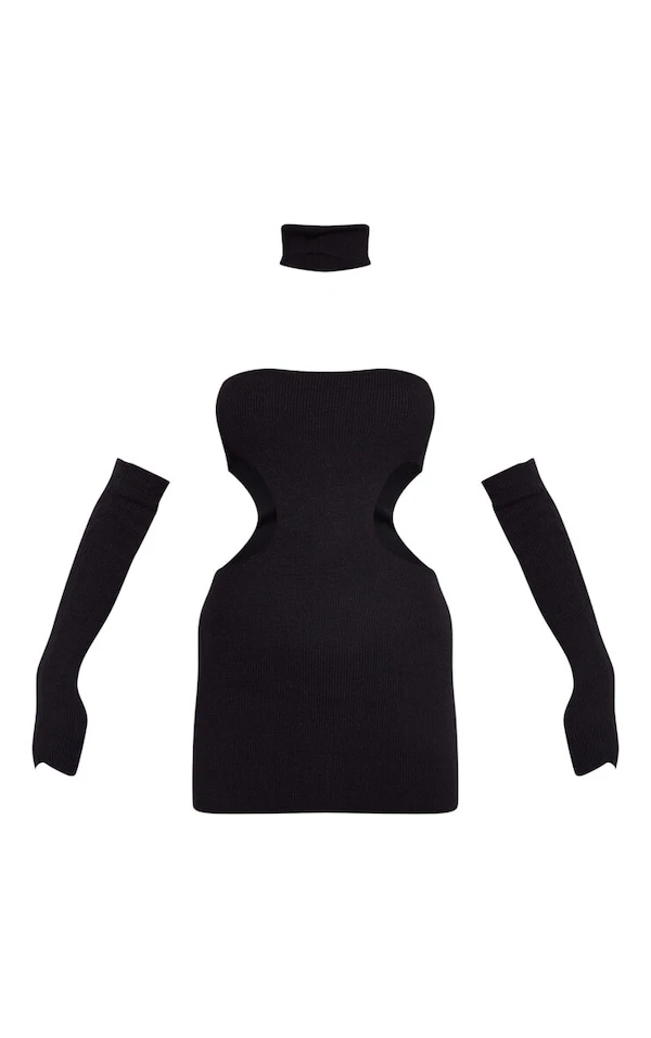 Robe bustier noire en maille à découpes avec col et manches