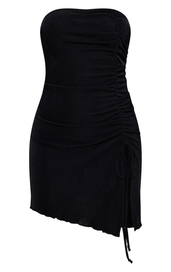 Robe bustier très moulante en acétate noir à ourlet légèrement volanté et fronces