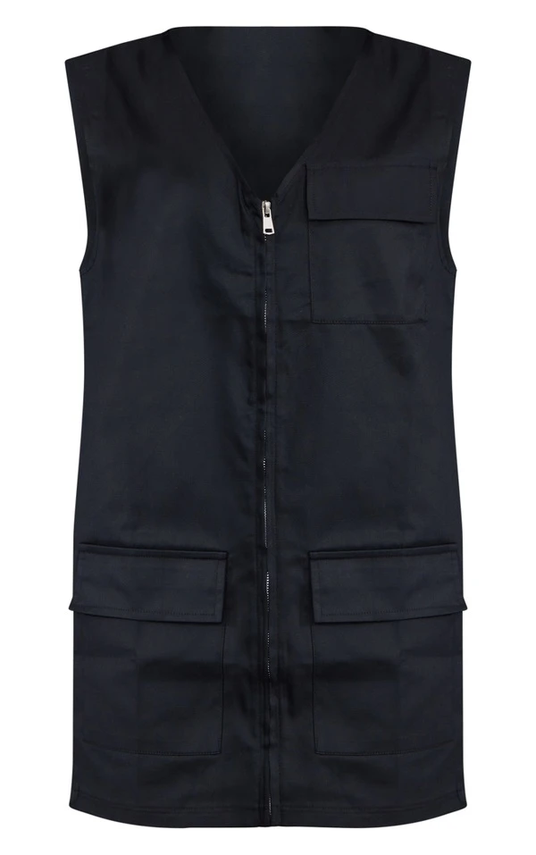 Robe cargo noire sans manches à détail poches