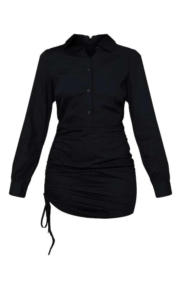 Robe chemise ajustée noire froncée sur le côté