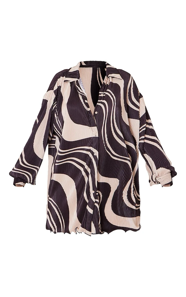 Robe chemise plissée noire à imprimé tourbillons et ourlet volanté