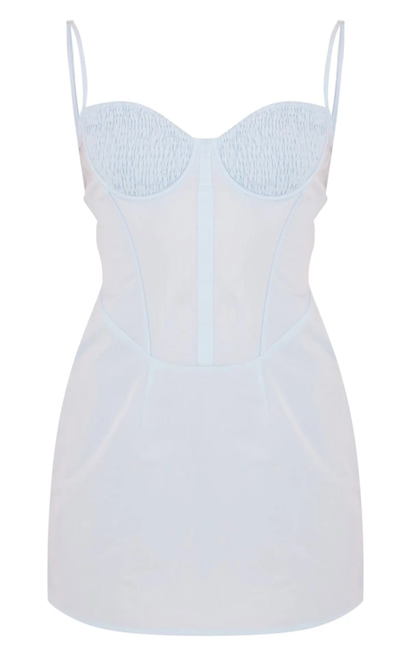 Robe corset moulante tissée bleu vif à buste froncé