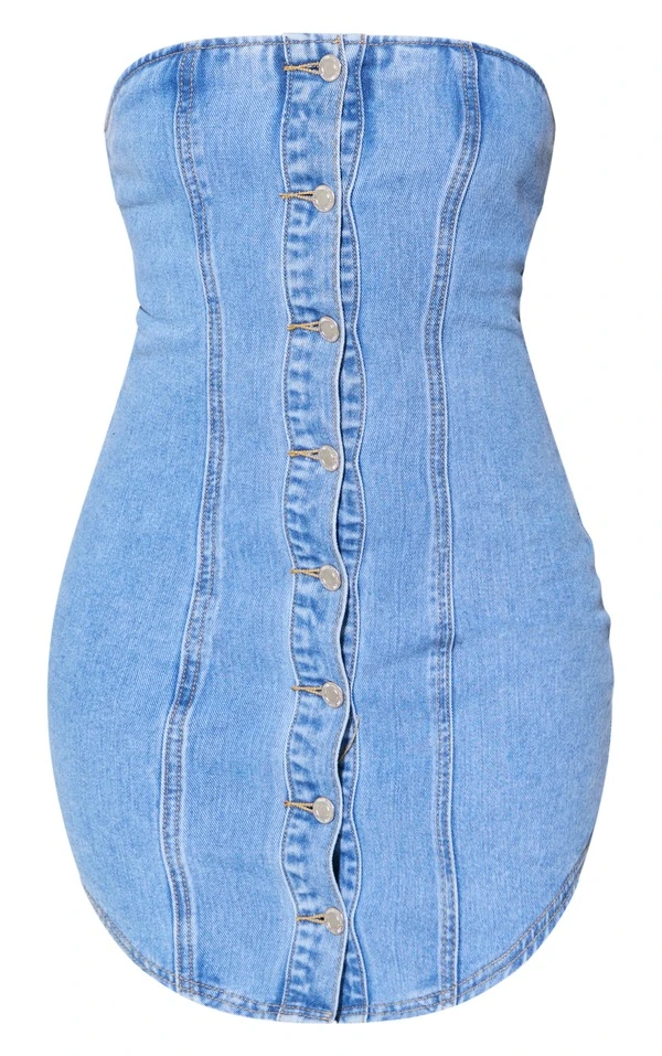 Robe courte en jean bleu vif à ourlet incurvé et boutons