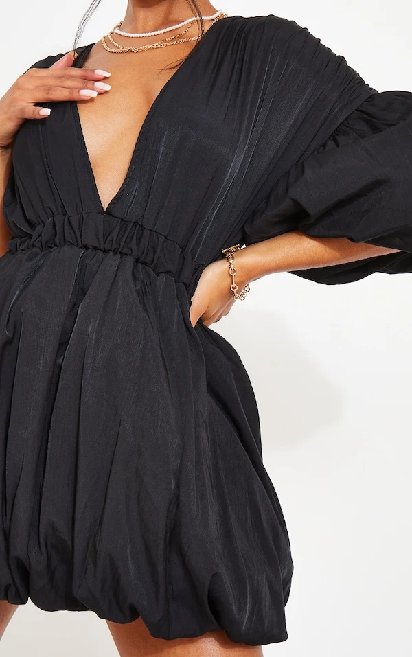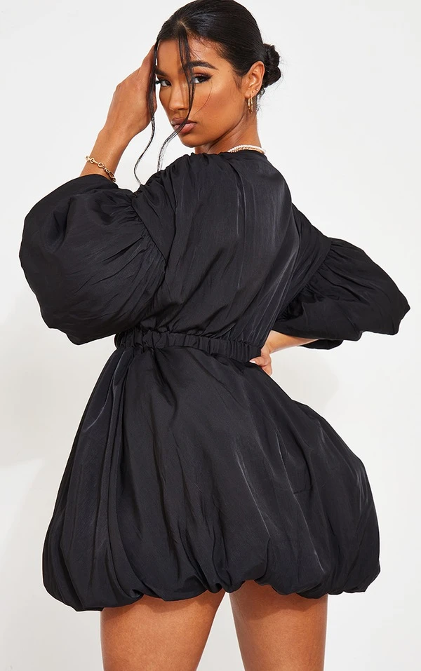 Robe droite noire à manches et jupe bouffantes