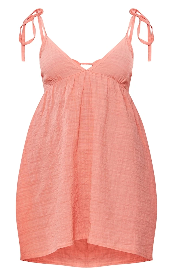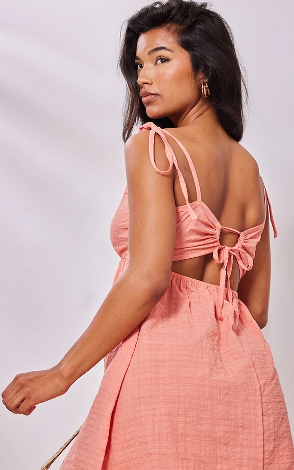 Robe droite pêche effet lin découpée à dos noué