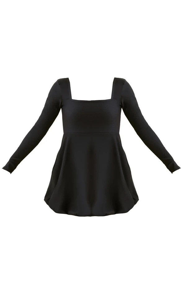 Robe droite stretch tissée noire à manches longues et jupe bouffante