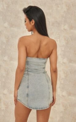 Robe en jean bleu clair délavé cintrée à détail coutures