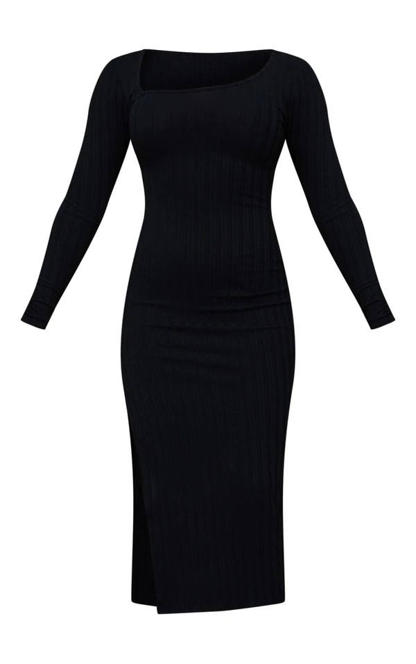 Simple et très efficace cette robe au style fendu ! On adore sa coupe longue stylée, son coloris noir qui va avec tout et sa matière largement côtelée super flatteuse. On enfile une paire de bottes hautes et une paire de créoles épaisses. Magnifique ce look !