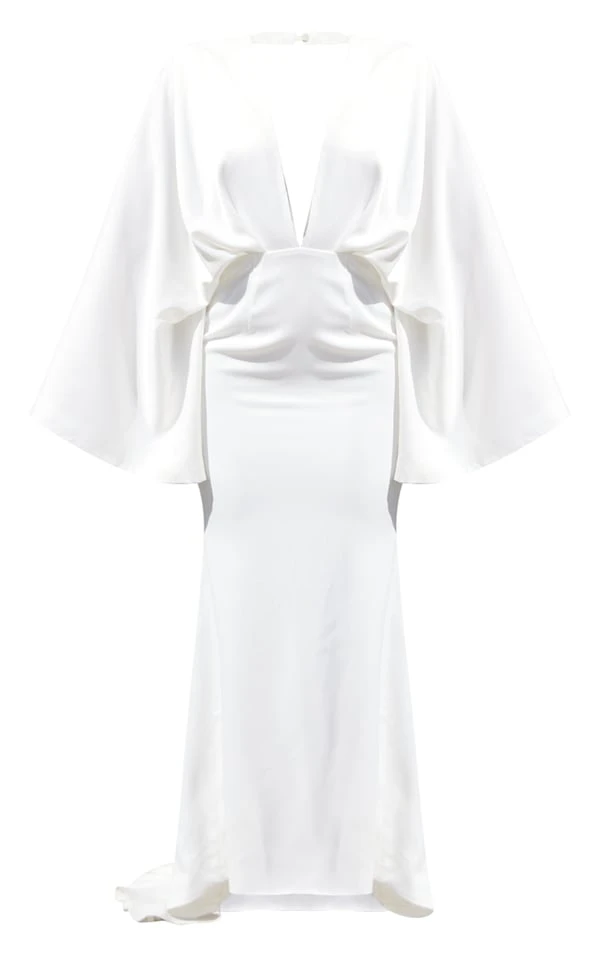 Robe longue drapée satinée blanche