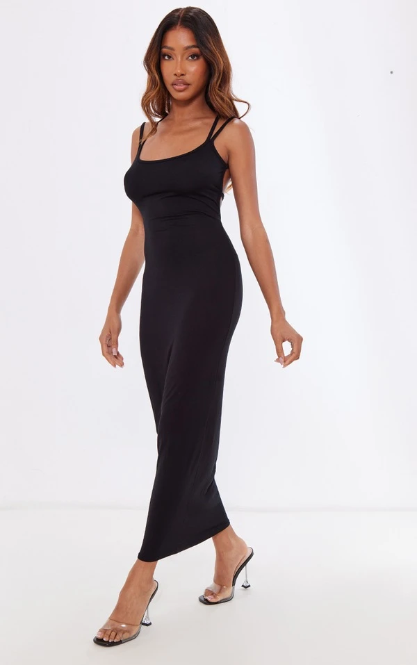 Robe Longue En Jersey Noir à Bretelles Dans Le Dos