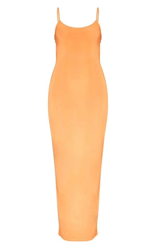 Robe longue moulante orange découpée dans le dos à col rond et bretelles