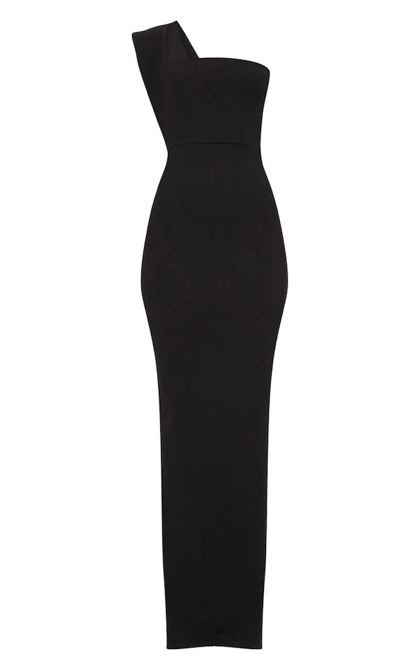 Robe longue noire à bretelle asymétrique