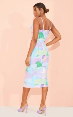 Robe longue plissée multicolore à imprimé aquarelle et bretelles