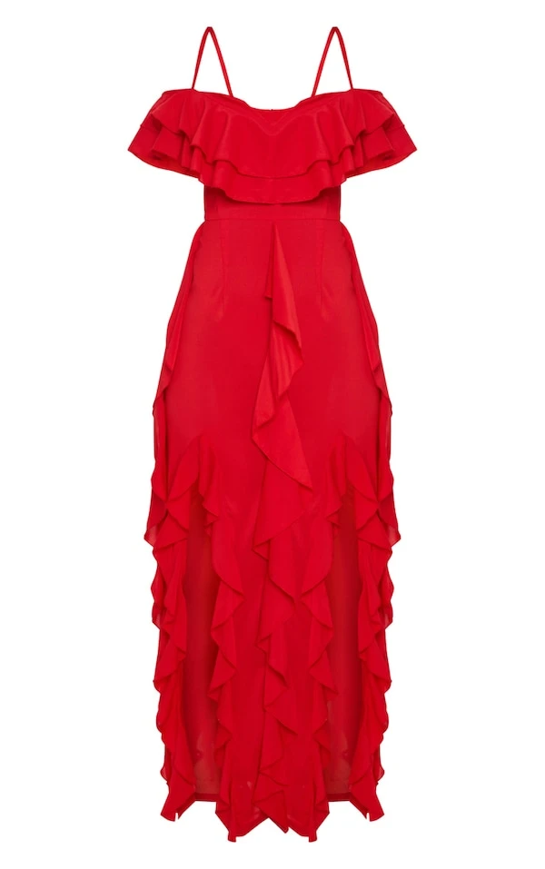 Une vraie señorita dans cette longue robe ! Son coloris rouge très féminin, ses volants délicates et sa coupe hyper flatteuse en font une tenue #flawless. On la porte avec des talons et quelques accessoires et une paire de talons pour un OOTD vraiment canon.
