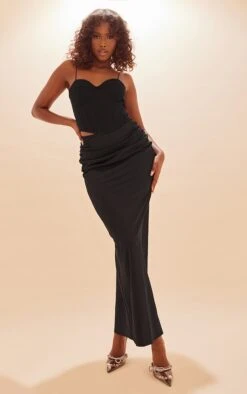 Une occasion spéciale en vue ? Cette robe est faite pour vous ! Avec sa matière tissée satinée noire tellement luxe, son design à bretelles et sa coupe longue, elle va faire de vous la reine de la soirée. Ajoutez simplement des talons aiguilles et des accessoires dorés et voilà !