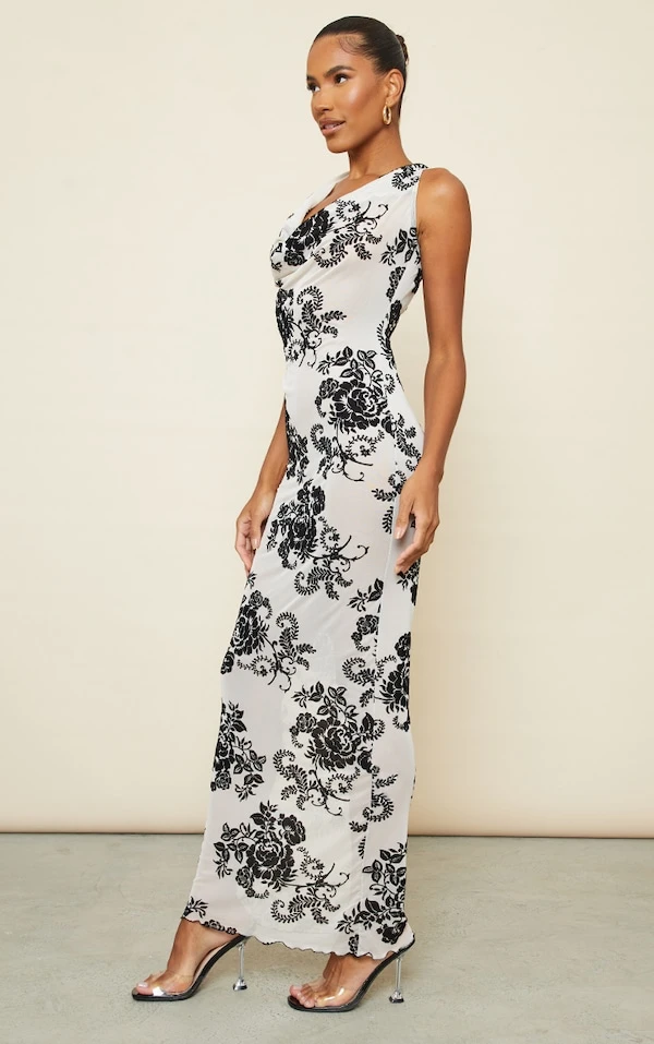 Vous êtes trop belle dans cette robe longue. On est sous le charme de la transparence de sa matière, de sa couleur nude canon et de son design à fleurs floquées et à noeud dans le dos. En soirée, attirez tous les regards sur vous en portant cette robe avec des talons hauts et quelques accessoires. Culte sur culte !