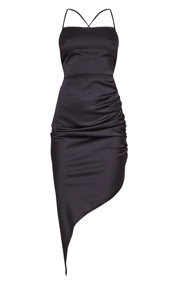 Robe mi-longue satinée noire à bretelles lacées dans le dos