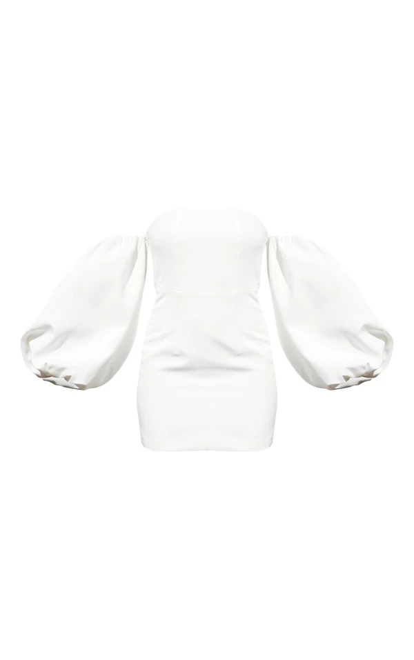 Robe moulante blanche à manches longues bouffantes et col bardot