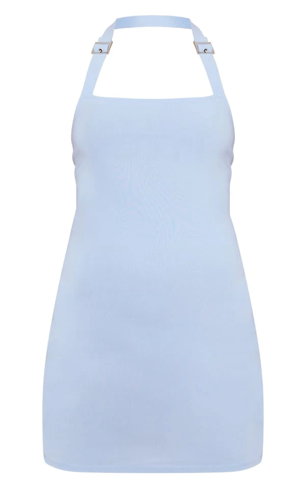 Robe moulante bleue tissée stretch à détail boucles et dos nu