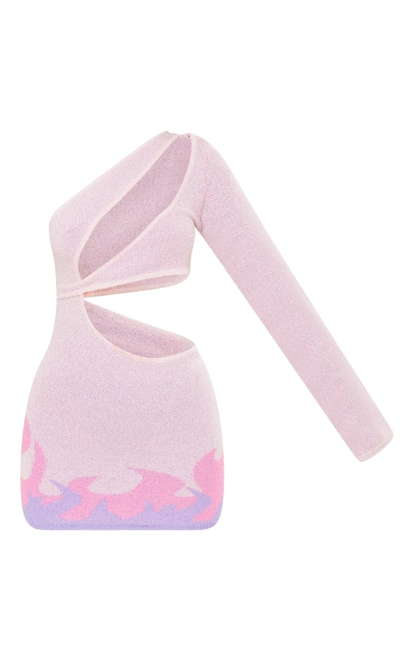 Robe moulante en maille éponge lilas à flamme et épaule unique