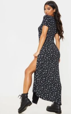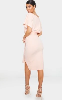 Robe moulante en mesh fleuri rouge froncé à barre en V